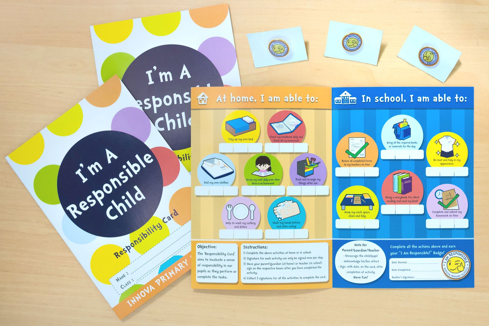 An activity card to encourage students to practice individual responsibility by engaging them in a series of tasks in school/at home. A small token (collar pin) is rewarded to students who complete all the tasks.